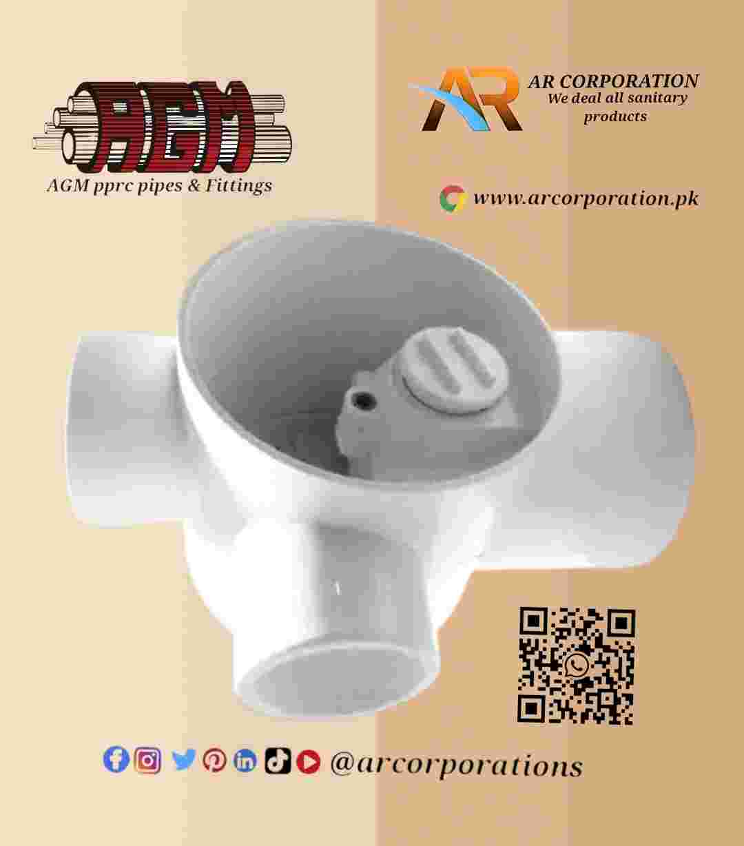 An AGM uPVC floor trap (3″ SCH-40) is a floor-level plumbing fitting that collects and discharges standing water into the soil/waste drainage system while providing a water seal to block sewer gases. It’s a molded uPVC trap sized for nominal 3-inch outlet and normally supplied with a removable strainer/grating and a solvent-weld (slip) socket connection to SCH-40 uPVC pipe. AGM lists 3″ P-traps / floor traps in their UPVC fittings line.